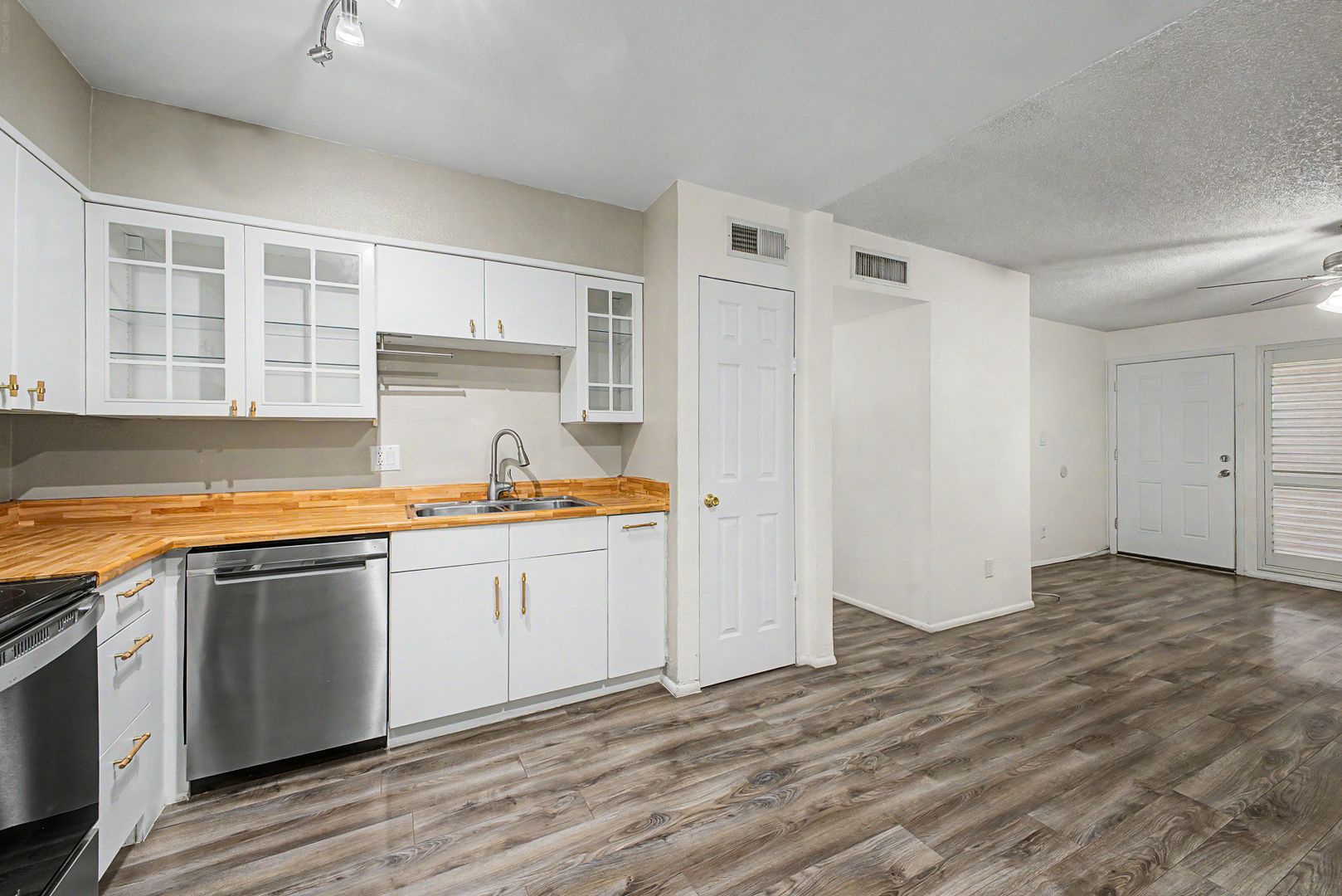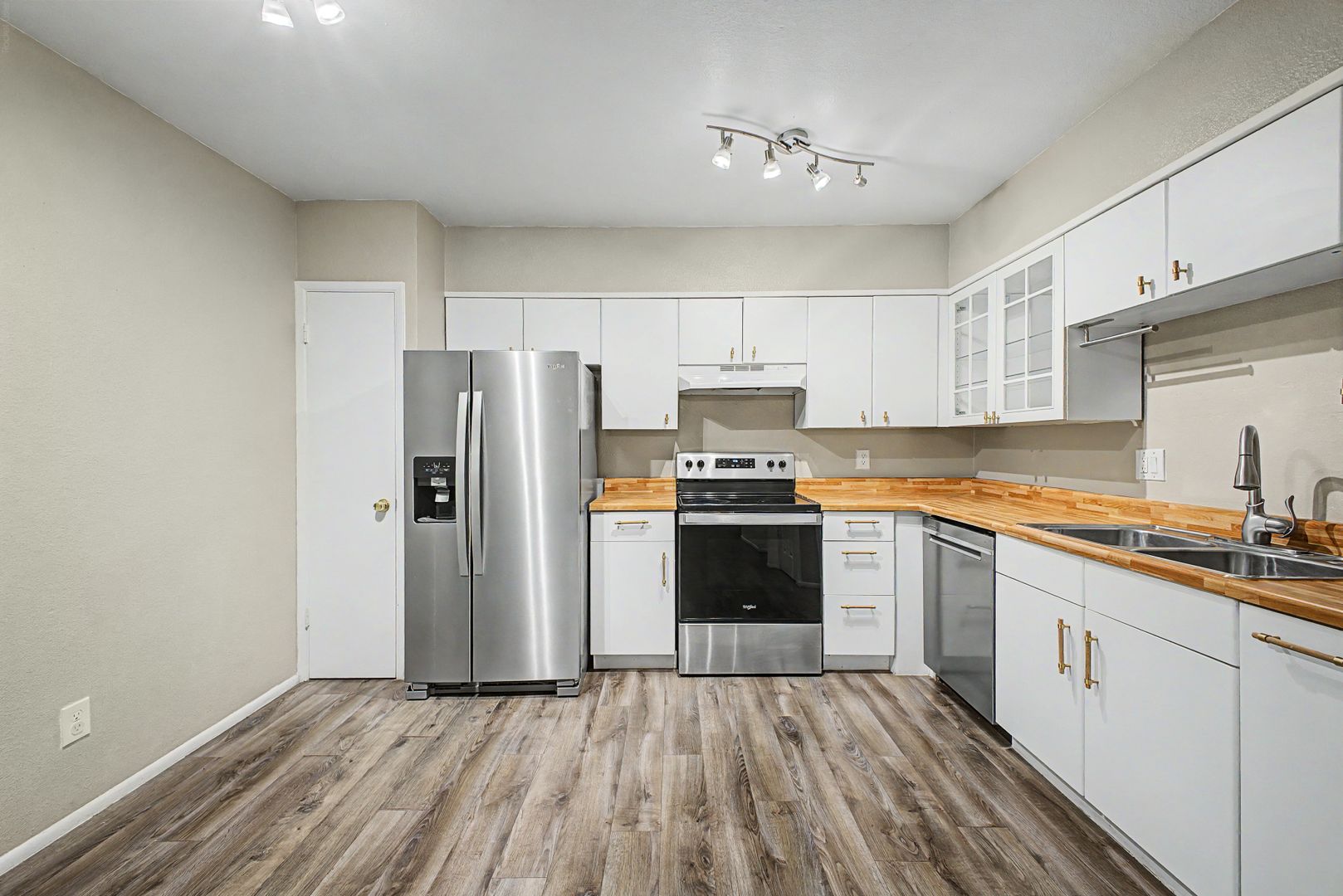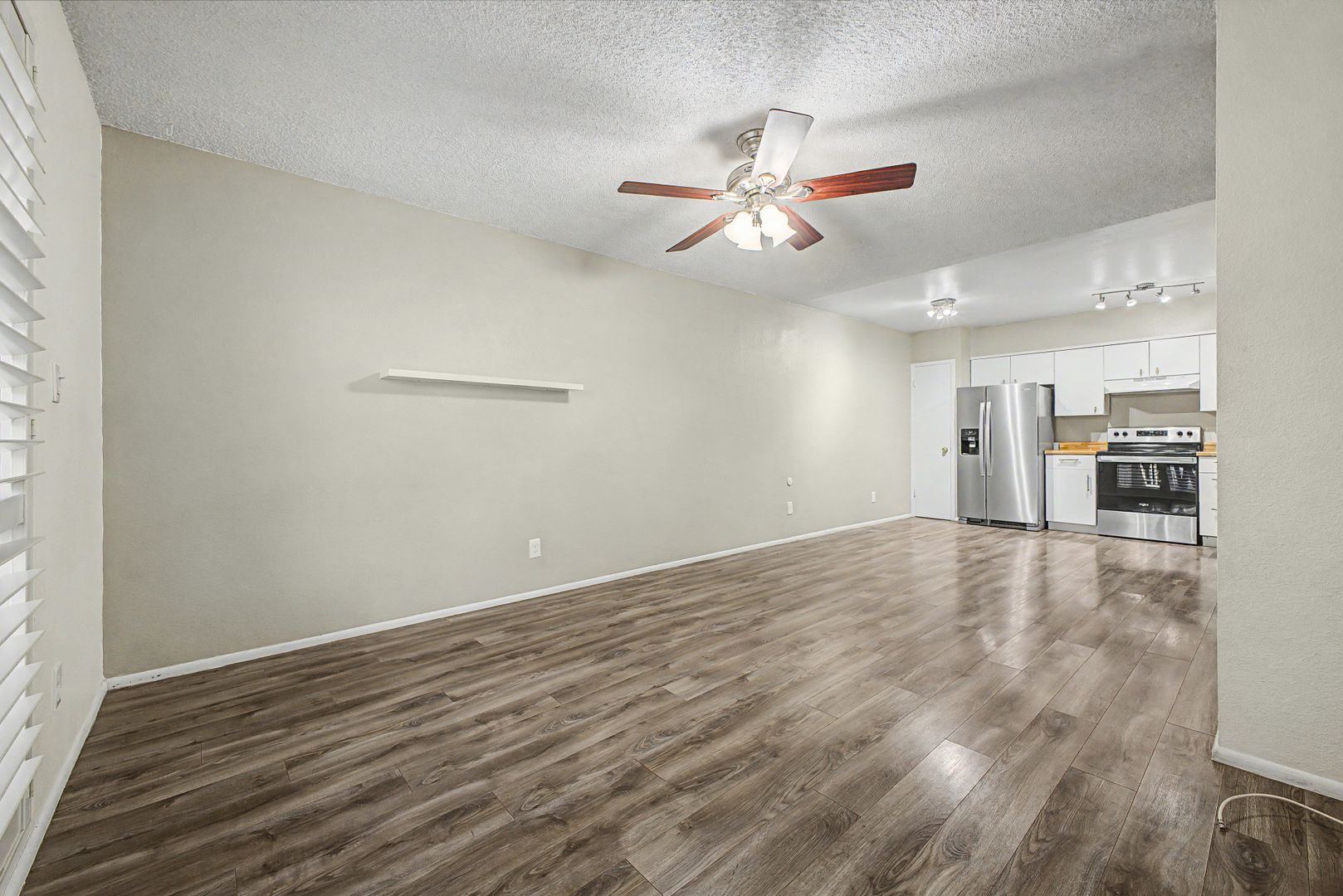 This beautifully townhome offers a light, bright, and open layout with thoughtful upgrades throughout. Enjoy stylish hardwood flooring, two spacious bedrooms with walk-in closets, and an elegant kitchen featuring stainless steel appliances. The home is enhanced with built-in shutters throughout, adding both charm and functionality. Conveniently, two private parking spaces are located directly in front of the entrance for easy access.