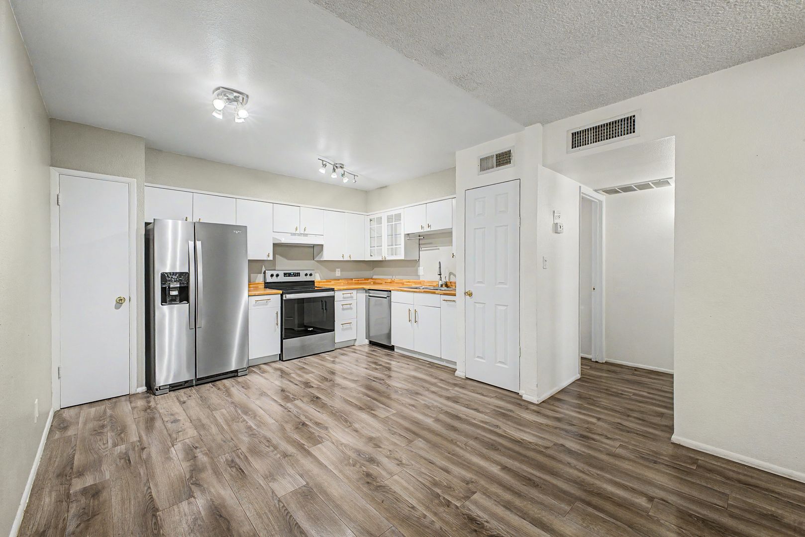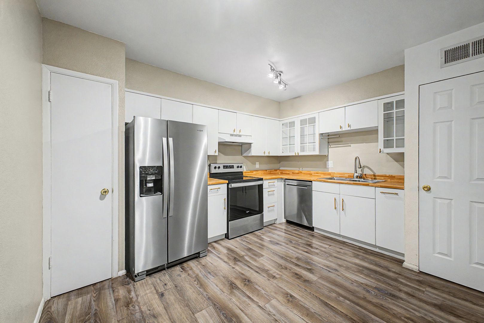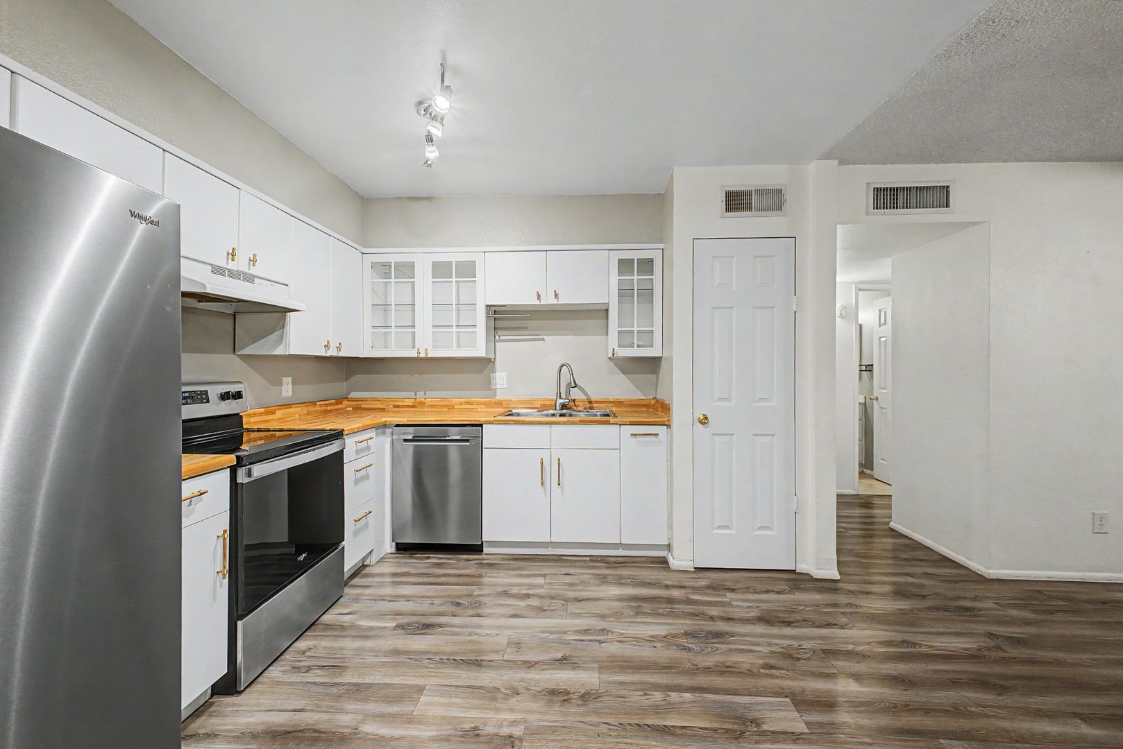 This beautifully townhome offers a light, bright, and open layout with thoughtful upgrades throughout. Enjoy stylish hardwood flooring, two spacious bedrooms with walk-in closets, and an elegant kitchen featuring stainless steel appliances. The home is enhanced with built-in shutters throughout, adding both charm and functionality. Conveniently, two private parking spaces are located directly in front of the entrance for easy access.