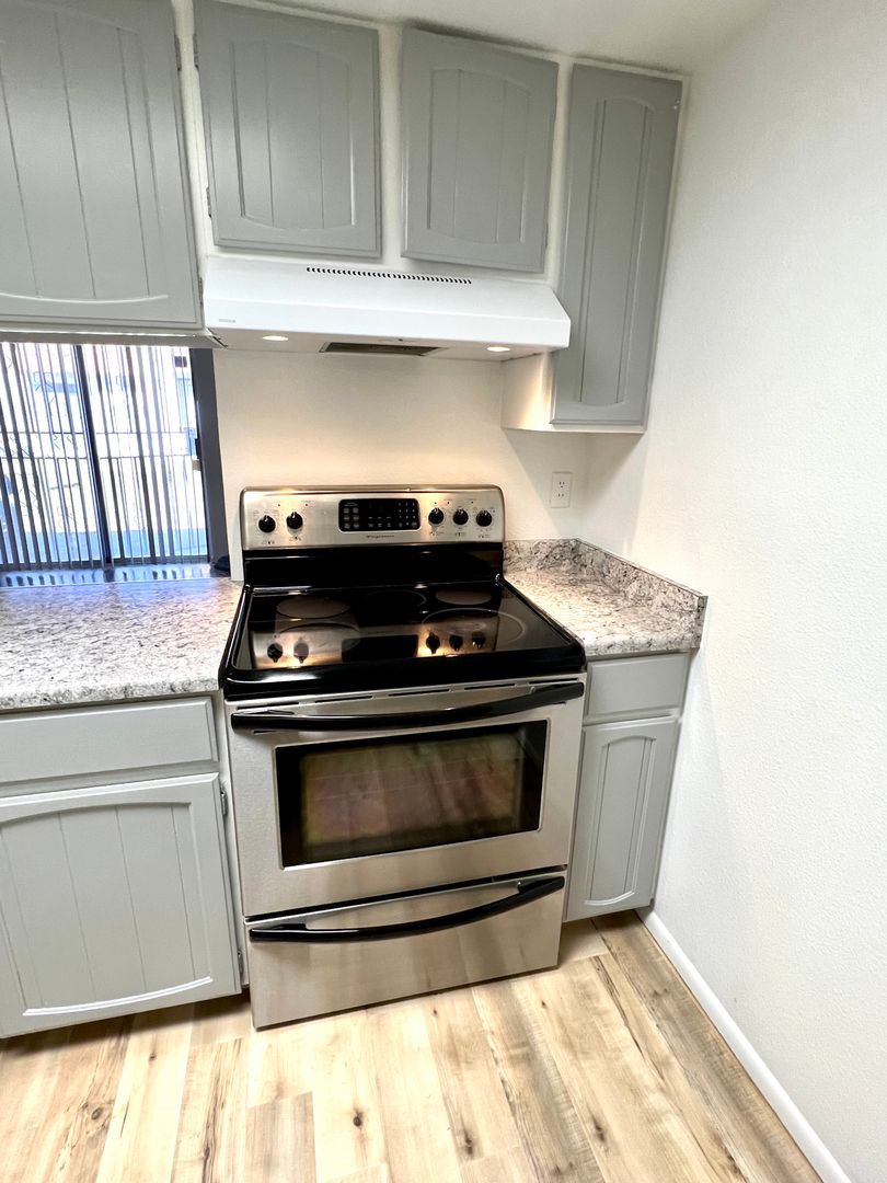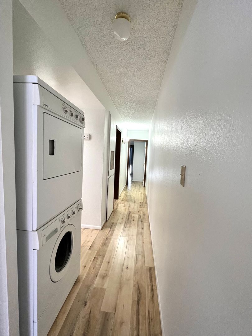 This cozy and modern includes great newer flooring, all appliances, 2 bedrooms, 1 bathroom with a covered patio. You will enjoy the green areas, fruit trees, and the community pool. Unit includes to parking spaces. Very private location. Near shopping, restaurants, entertainment and much more.