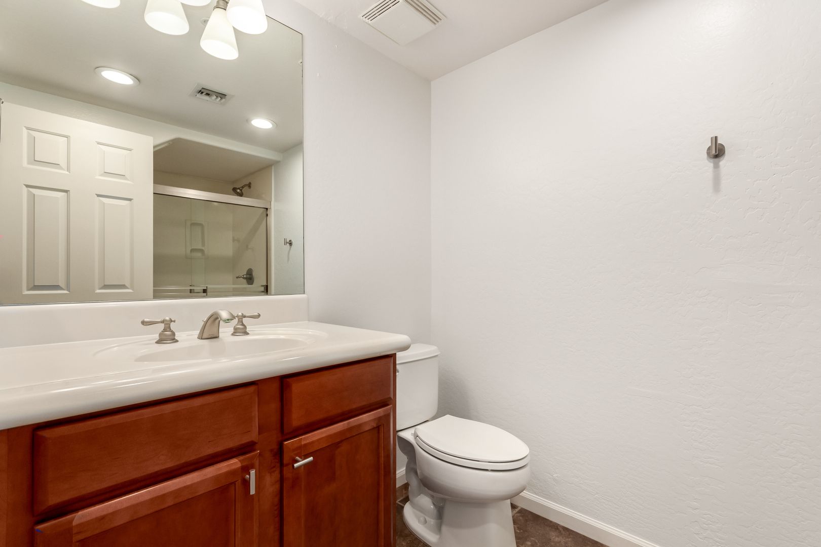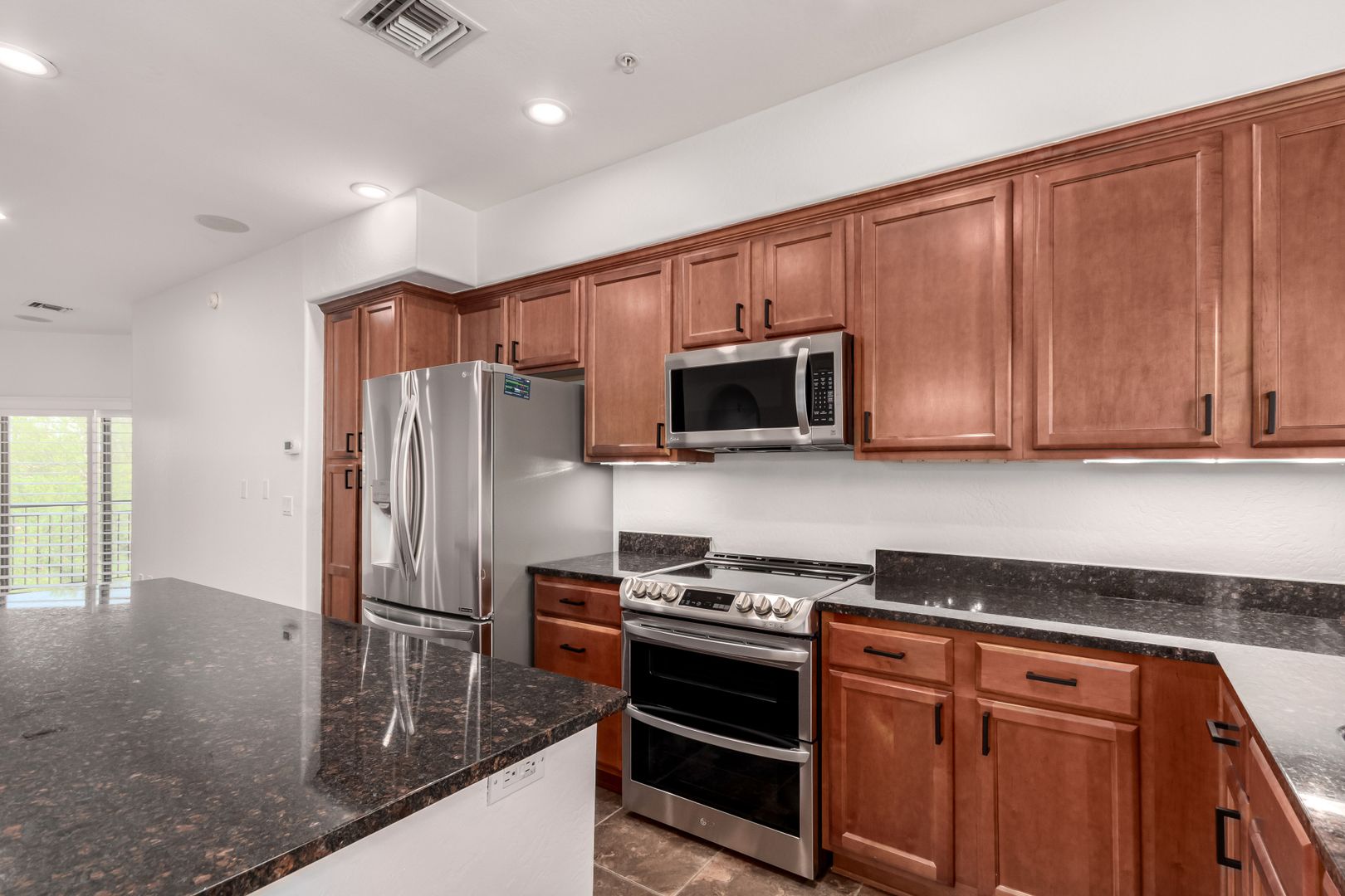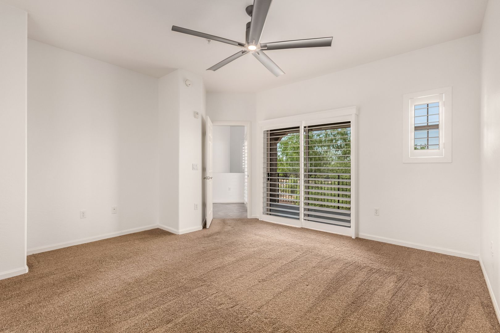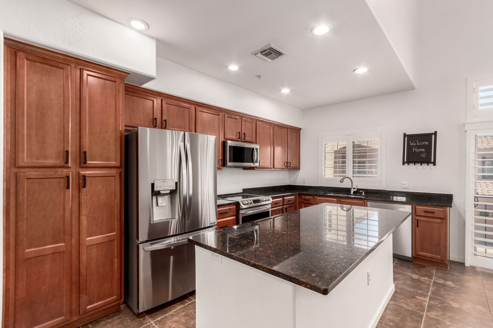 MODERN! STUNNING! This 2-bedrooms, 2-bathrooms + a Den, offers modern living in a vibrant resort style community. Featuring an open floor plan, plantation shutters & brand new paint. Home exudes warmth and style. The spacious kitchen boasts granite countertops, upgraded stainless steel appliances, open floor plan & large island. The main suite includes a covered deck with lush landscaping for morning coffee, walk-in closet, en-suite bath with dual sinks, soaking tub, & shower. A 3rd-level loft is perfect for a home office or game room. 2-car garage, & easy access to the community pool, spa, and sports courts. Located near the sought-after Aviano Community Center & top-rated school with shopping, dining & entertainment just minutes away. Don't miss this opportunity!
