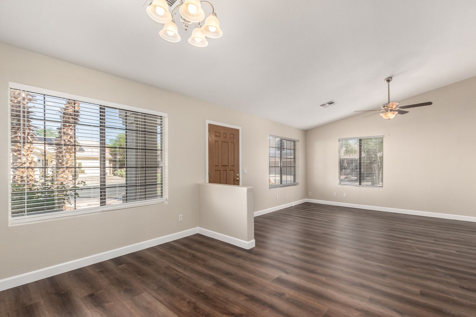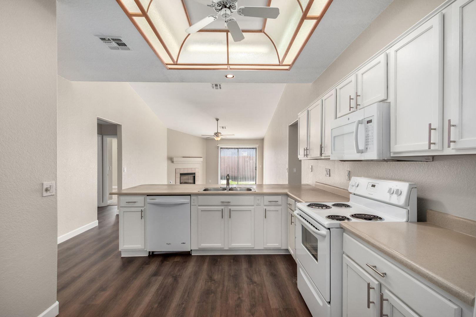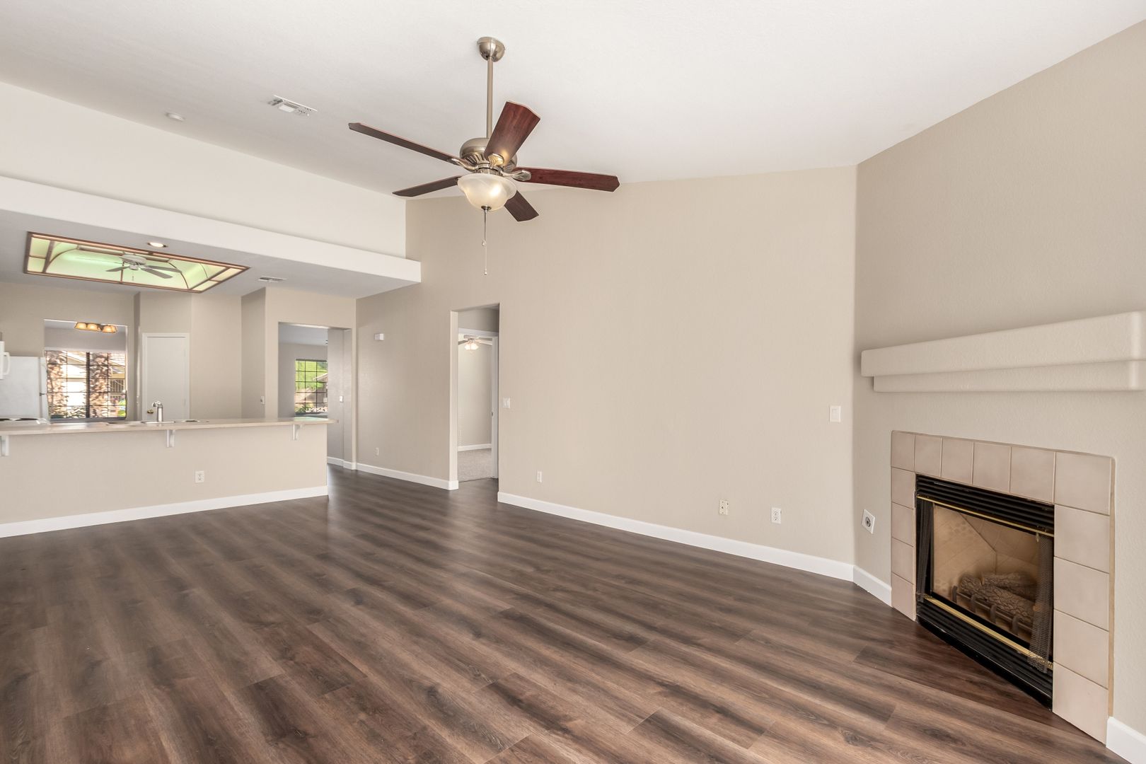 Freshly painted inside and out, this single-level home offers 3 bedrooms, 2 bathrooms, and an open floor plan perfect for modern living. Enjoy brand-new carpet and luxury vinyl plank flooring throughout, a spacious family room with vaulted ceilings and a cozy fireplace, and a bright kitchen with ample counter space and a breakfast bar. The neutral color palette and natural light create a warm, inviting atmosphere.