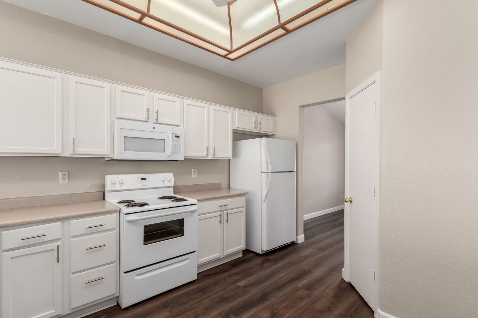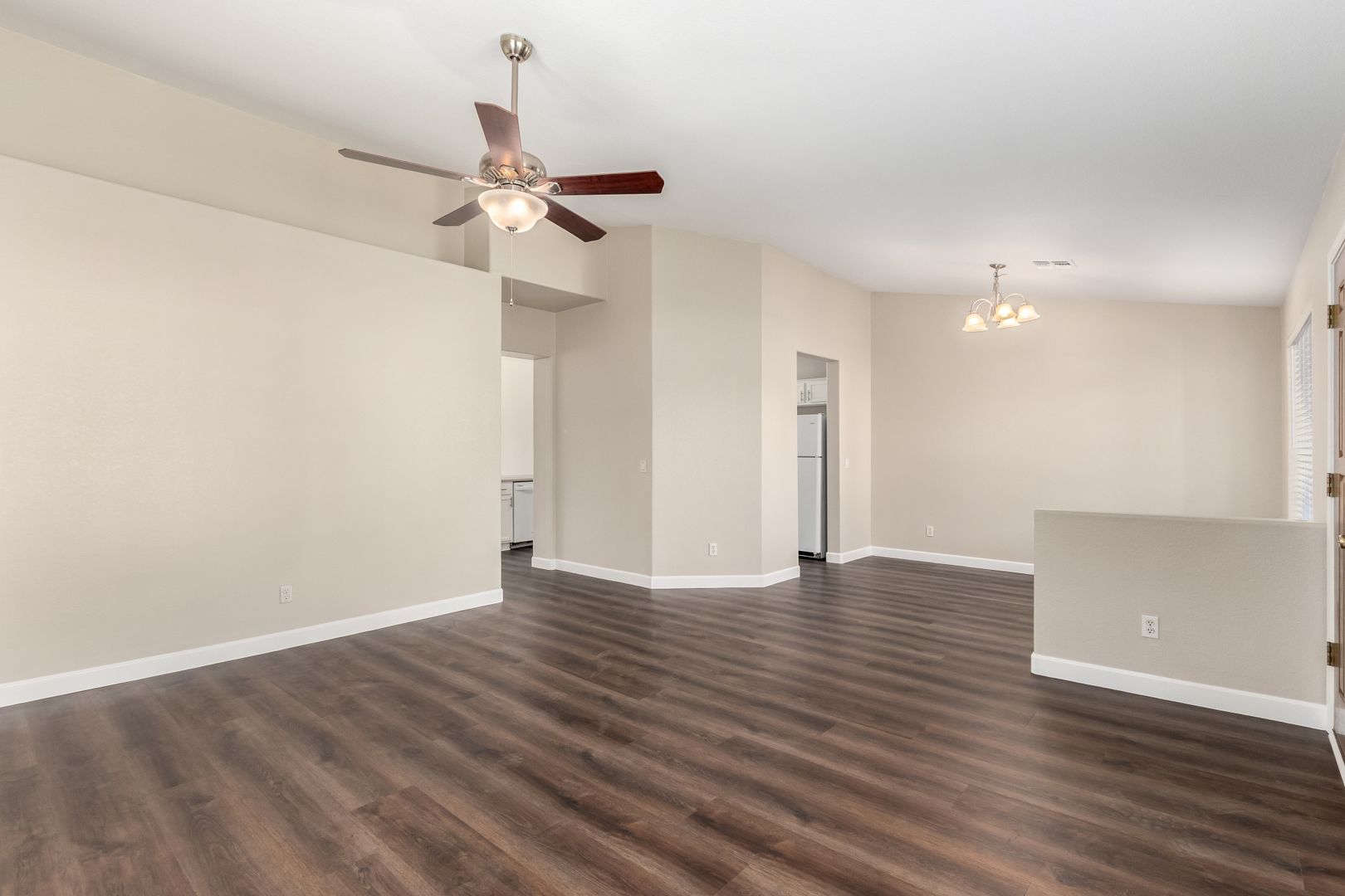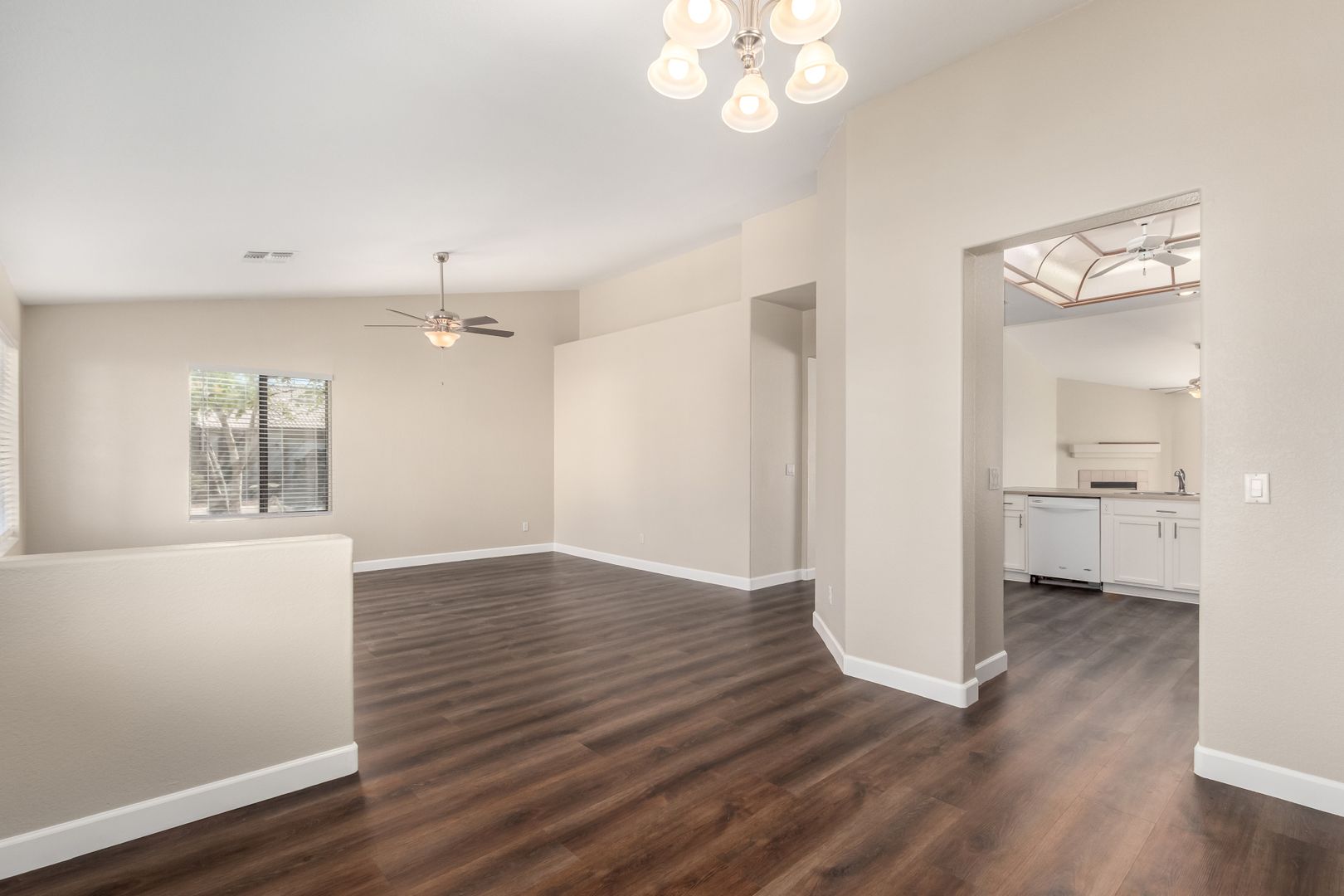 Freshly painted inside and out, this single-level home offers 3 bedrooms, 2 bathrooms, and an open floor plan perfect for modern living. Enjoy brand-new carpet and luxury vinyl plank flooring throughout, a spacious family room with vaulted ceilings and a cozy fireplace, and a bright kitchen with ample counter space and a breakfast bar. The neutral color palette and natural light create a warm, inviting atmosphere.