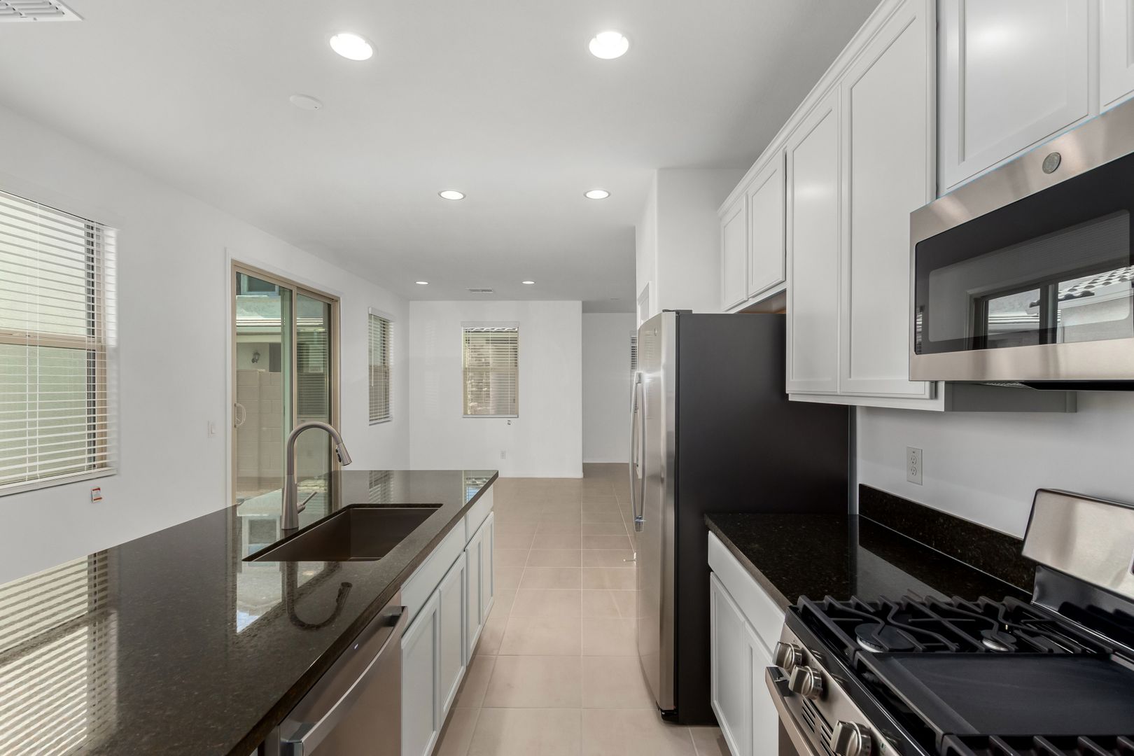 BRAND NEW! STUNNING! LOW MAINTENANCE BACKYARD! This 3 Bedroom, 3 bathroom, 2-Story home includes all beautiful stainless-steel appliances, gas range, washer and dryer. You will love the open-concept design that connects the kitchen, dining area, and great room, while a charming front porch that adds standout curb appeal. Upstairs, you'll find a convenient laundry room near all the bedrooms, plus a spacious primary suite with dual vanities, separate tub and shower, and a large walk-in closet. New landscaping in backyard that that is very low maintenance. The community includes a swimming pool, playground, BBQ grill, Per run and so much more. You will be impressed once you step into this gem.